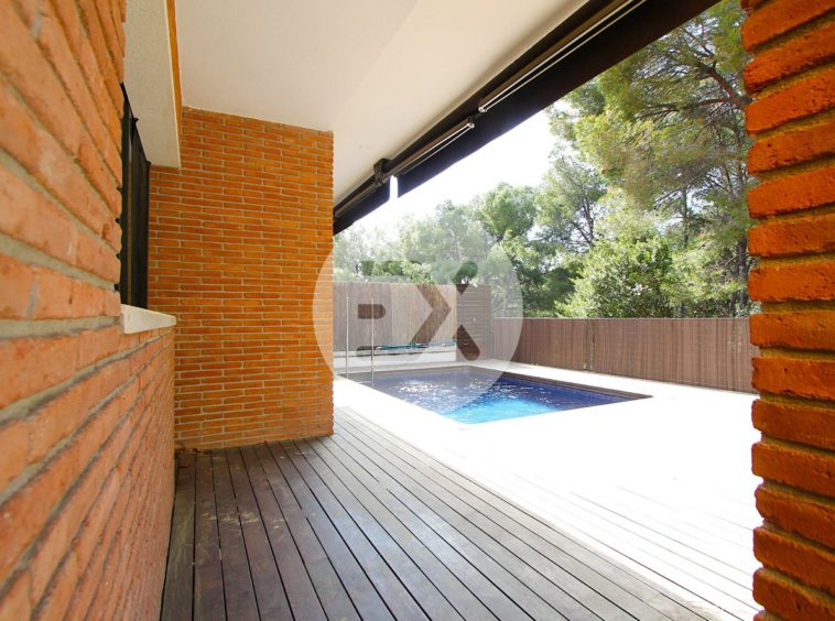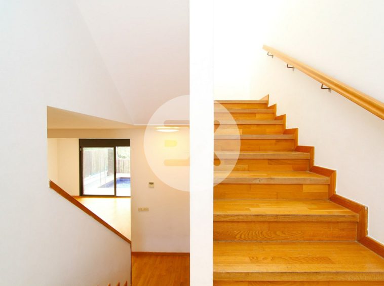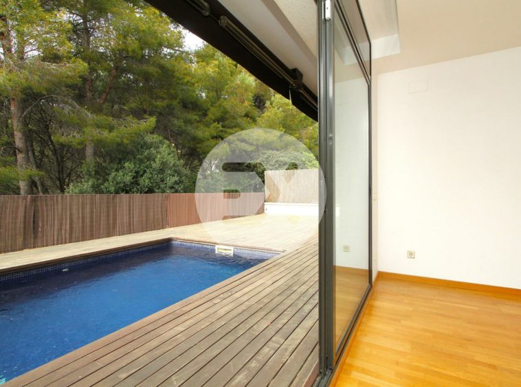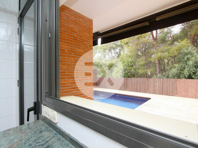 La planta principal tiene como protagonista el enorme salón de más de 30 m2 con espacios bien diferenciados y con un gran ventanal por el cual accedemos a su jardín privado con piscina completamente rodeado de naturaleza. La cocina es amplia y equipada, con espacio para una zona office y comunica también con el jardín.