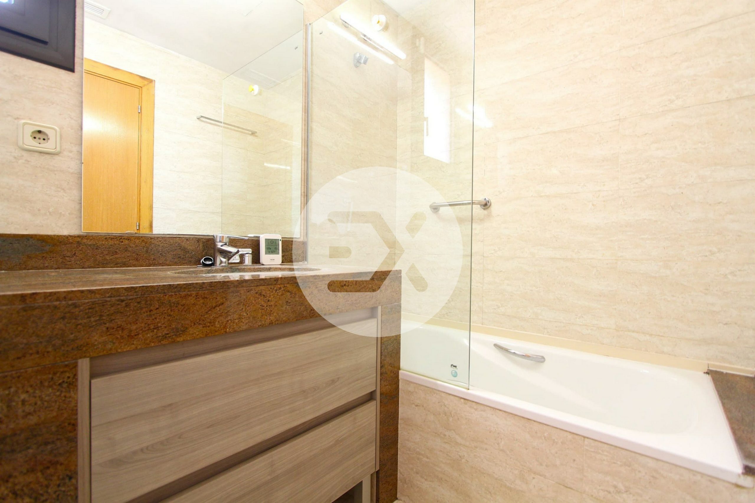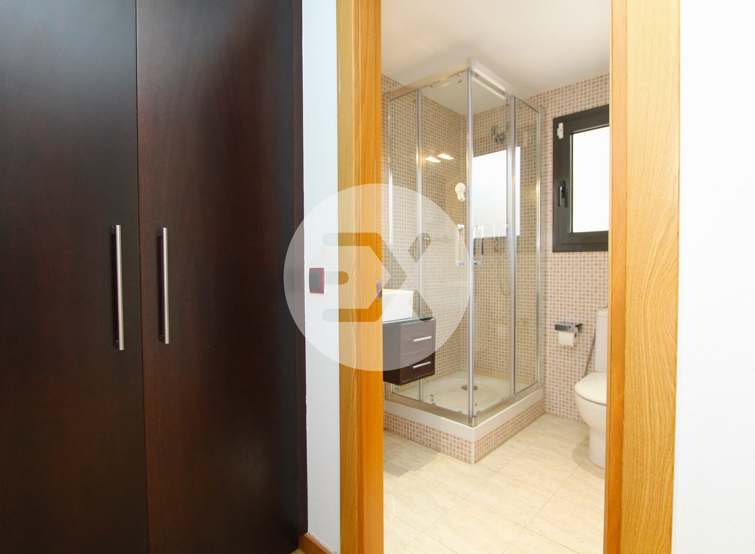 Al acceder a la propiedad encontramos un cómodo recibidor con armario de cortesía, un baño completo y acceso a nivel al garaje privado de 30m2 perfecto para aparcar hasta dos vehículos.